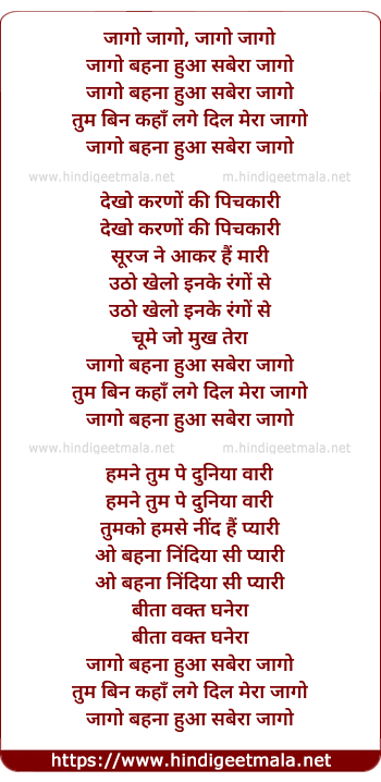 Lyrics of Jaago Jaago Behna Hua Sabera - जागो जागो बहना हुआ सबेरा