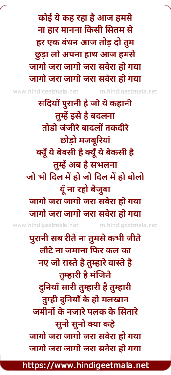 Lyrics of Jaago Zaraa - कोई ये कह रहा है आज हमसे