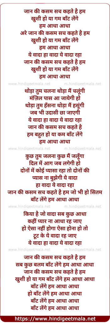 Lyrics of Jaan Ki Kasam Sach - जान की कसम सच