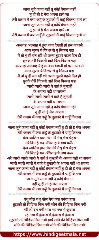 Lyrics of Jaana Tune Jaana Nahin - जाना तूने जाना नहीं