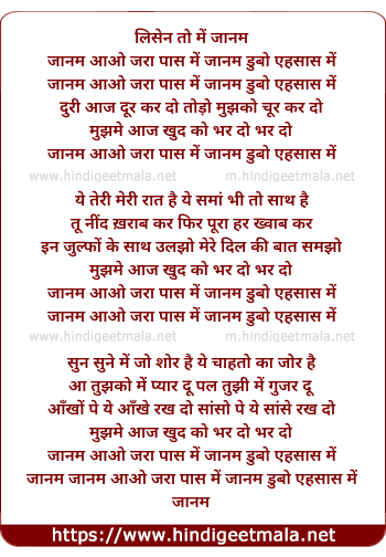 Lyrics of Janam Aao Jaraa Paas Me - जानम आओ जरा पास में