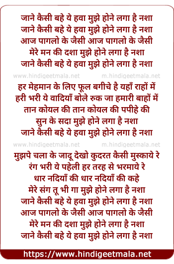 Lyrics of Jaane Kaisi Bahe Ye Hawa Mujhe Hone Laga Hai Nasha - जाने कैसी बहे ये हवा मुझे होने लगा है नशा