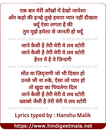 Lyrics of Jaane Kaisi Hai, Teri Meri Yeh Love Story (Part 2) - एक बार मेरी आँखों में देखो जायेशा