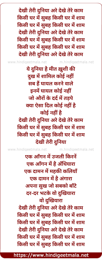 Lyrics of Dekhi Teri Duniya Are - देखी तेरी दुनिया अरे