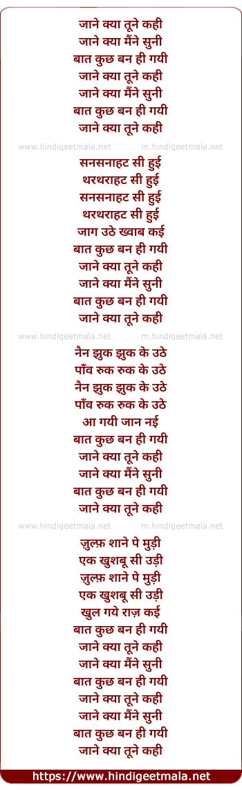Jaane Kya Tune Kahi - जाने क्या तूने कही