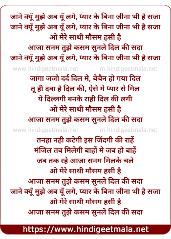 jane kyu mujhe ab yu lage, pyar ke bina jina bhi hai saja