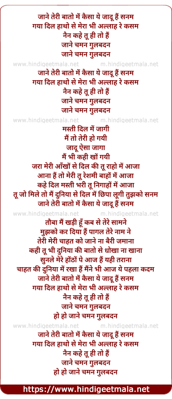 Lyrics of Jaane Teri Bato Me Jaadu - जाने तेरी बातो में जादू