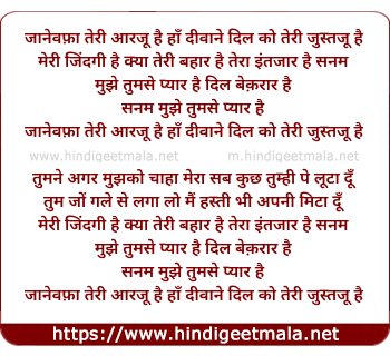 Lyrics of Jaane Wafaa Teri Aarzoo Hai - जानेवफ़ा तेरी आरजू है हाँ दीवाने दिल को तेरी जुस्तजू है