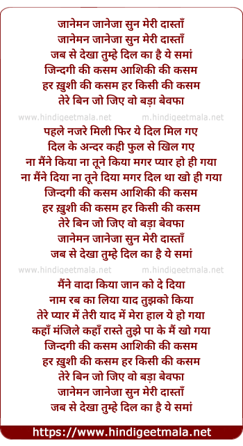 Lyrics of Jaaneman Jaane Jaan - जानेमन जाने जाँ