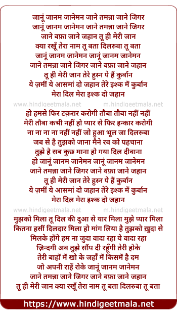 Lyrics of Janun Janam Jaaneman, Tere Husn Pee Hain Qurbaan - जानूं जानम जानेमन, तेरे हुस्न पे हैं कुर्बान
