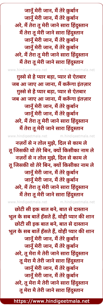 Lyrics of Jaanun Meri Jaan Main Tere Qurbaan - जानूँ मेरी जान, मैं तेरे क़ुर्बान
