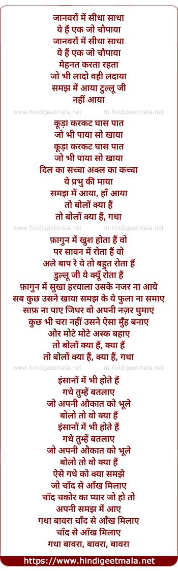 Lyrics of Jaanwaro Me Seedha Sadha - जानवरों में सीधा साधा