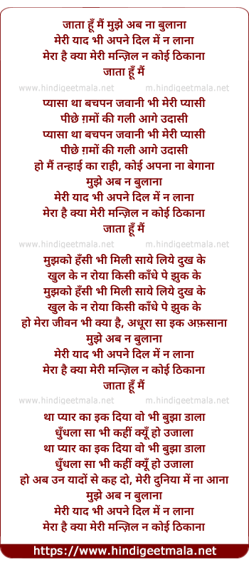 Lyrics of Jata Hu Main Mujhe Ab Na Bulana - जाता हूँ मैं मुझे अब ना बुलाना