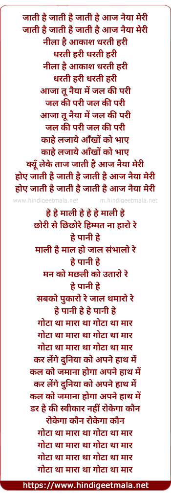 Lyrics of Jaati Hai, Jaati Hai Aaj Naiya Meri - जाती है, जाती है आज नैया मेरी
