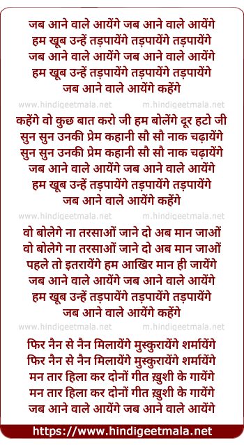 Lyrics of Jab Aane Wale Aayenge - जब आने वाले आयेंगे