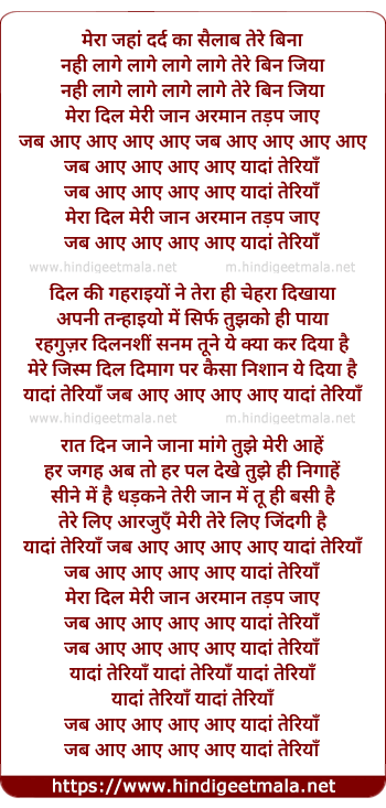 Lyrics of Jab Aaye Aaye Aaye Aaye Yada Teriya - जब आए आए आए आए यादां तेरियाँ