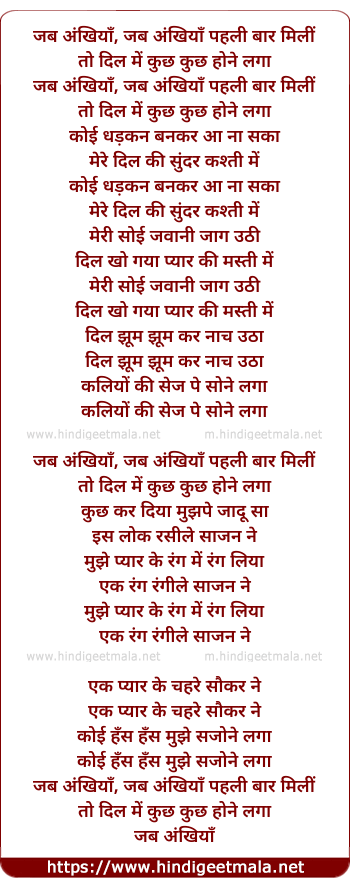 Lyrics of Jab Ankhiya Pehli Bar Mili - जब अंखियाँ, जब अंखियाँ पहली बार मिलीं
