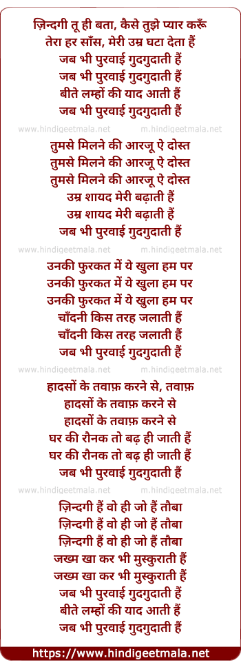 Lyrics of Jab Bhi Purvaai - ज़िन्दगी तू ही बता, कैसे तुझे प्यार करूँ