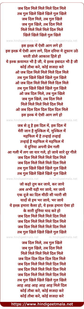 Lyrics of Jab Dil Mile Mile Mile Dil Mile - जब दिल मिले मिले मिले दिल मिले