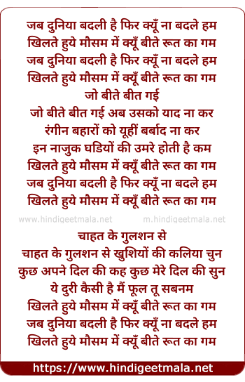 Lyrics of Jab Duniya Badli Hai Phir Kyu Na Badale Hum Khilte Hue Mausam Me - जब दुनिया बदली है फिर क्यूँ ना बदले हम