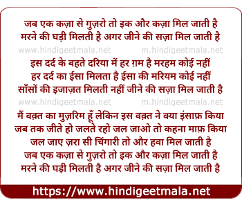 Lyrics of Jab Ek Qaza Se Guzro To - जब एक कज़ा से गुज़रो तो