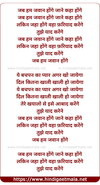 Lyrics of Jab Hum Jawaan Honge - जब हम जवान होंगे