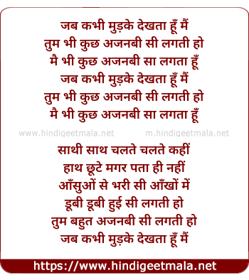 Lyrics of Jab Kabhee Mudake Dekhata Hu Mai - जब कभी मुड़के देखता हूँ मैं