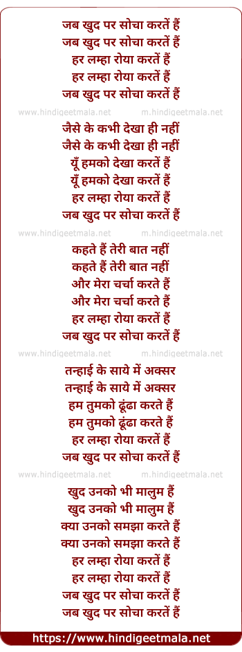 Lyrics of Jab Khud Par - जब खुद पर सोचा करतें हैं