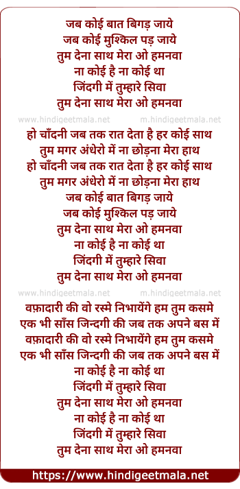 Lyrics of Jab Koi Baat Bigad Jaaye (2) - जब कोई बात बिगड़ जाये