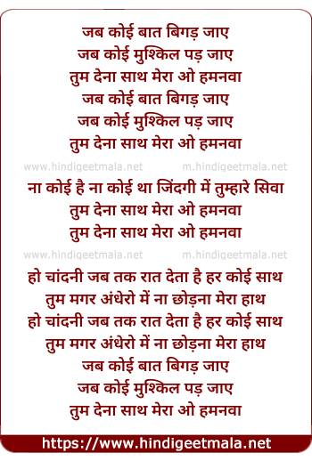 Lyrics of Jab Koyi Baat Bigad Jaaye (Sad) - जब कोई बात बिगड़ जाए