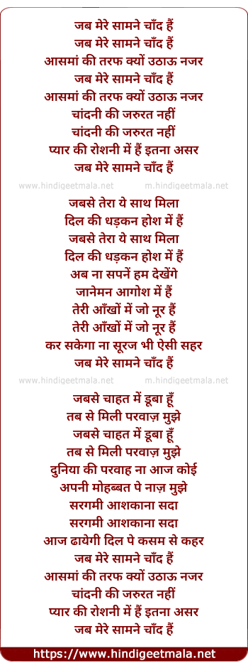 Lyrics of Jab Mere Samne Chand Hai - जब मेरे सामने चाँद हैं