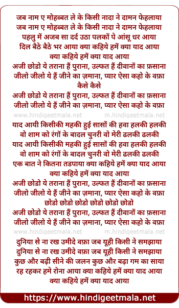 Lyrics of Jab Naam E Mohabbat Le Ke Kisi - जब नाम ए मोहब्बत ले के किसी