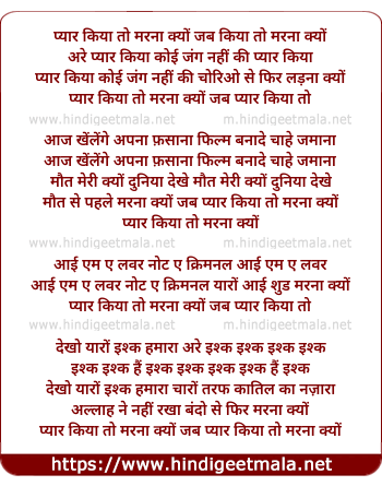 Lyrics of Jab Pyar Kiya To Marna Kyo - जब प्यार किया तो मरना क्यों