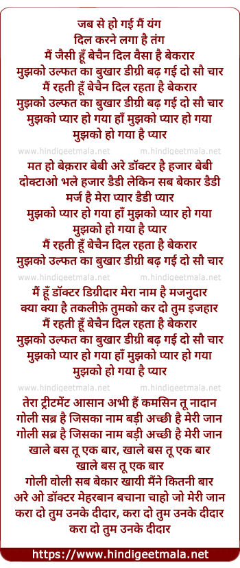 Lyrics of Jab Se Mai Ho Gayi Young - जब से हो गई मैं यंग