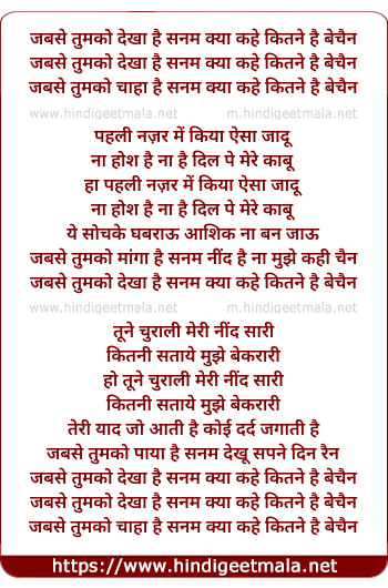 Lyrics of Jab Se Tumko Dekha Hain Sanam - जबसे तुमको देखा है सनम