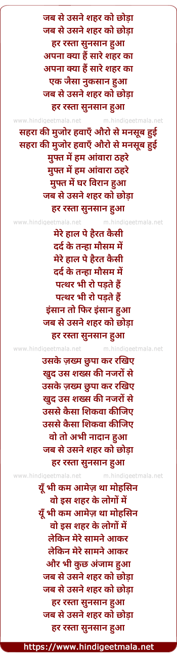Lyrics of Jab Se Usne Shehar Ko Chhoda - जब से उसने शहर को छोड़ा
