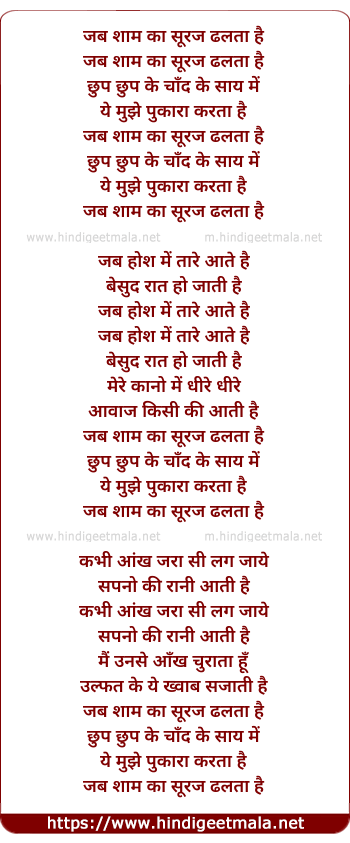 Lyrics of Jab Shaam Kaa Suraj - जब शाम का सूरज ढलता है