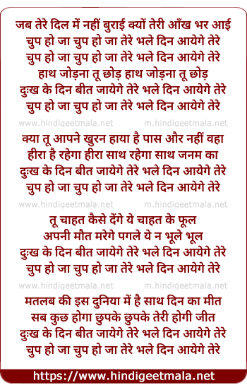chu ho ja chup ho jo tere bhale din aayege tere