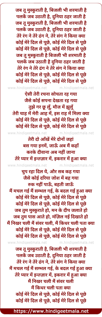Lyrics of Jab Tu Muskurati Hai - जब तू मुस्कुराती है