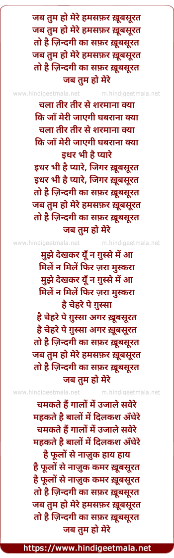 Lyrics of Jab Tum Ho Mere Hamsafar Khuburat - जब तुम हो मेरे हमसफ़र ख़ूबसूरत