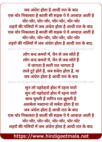 Lyrics of Jab Andheraa Hotaa Hai, Aadhi Raata Ke Baada Ek Chor - जब अंधेरा होता है आधी रात के बाद