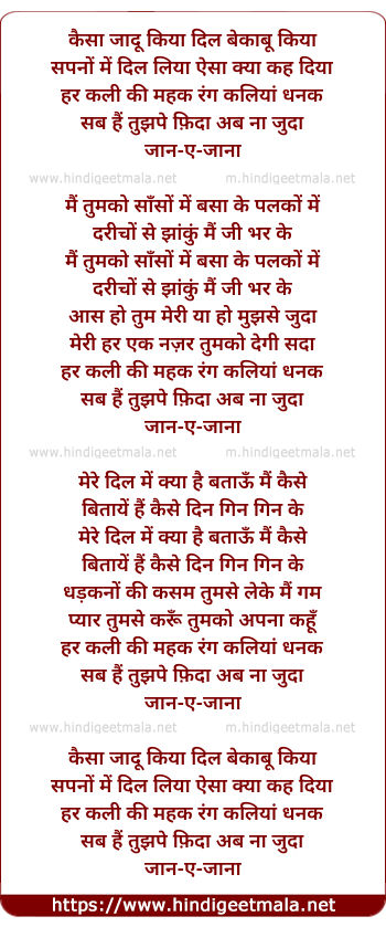 Lyrics of Jadoo Kiya - कैसा जादू किया दिल बेकाबू किया