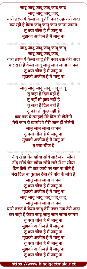 Lyrics of Jadu Jadu Jadu Charo Taraf Ye Kaisa Jadu - जादू जादू जादू चारो तरफ ये कैसा जादू