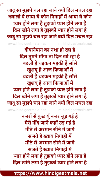 Lyrics of Jadu Sa Mujhpe Chal Raha - जादू सा मुझपे चल रहा