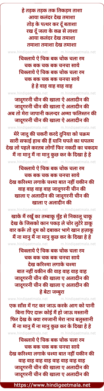 Lyrics of Jadugarni Cheen Ki - जादूगरनी चीन की
