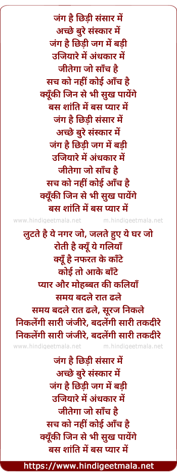 jung hai chhidi sansaar me