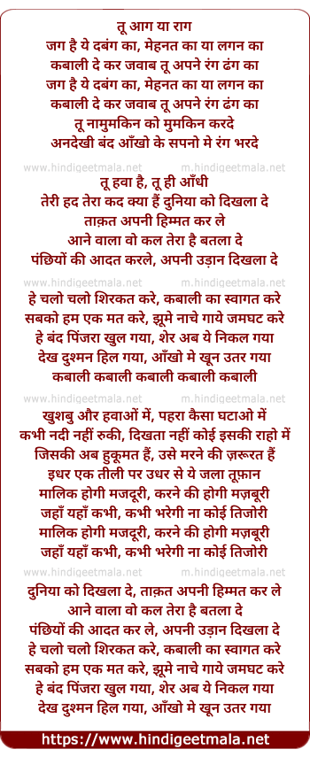 hey chalo chalo shirkat kare, kabali ka swagat kare