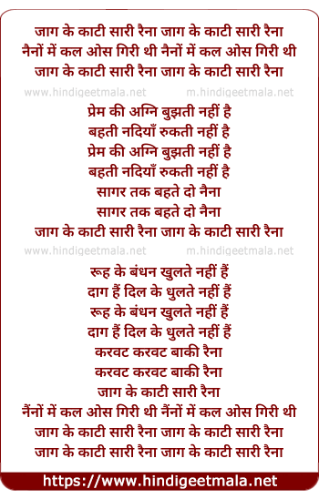 Lyrics of Jag Ke Katee Saree Raina - जाग के काटी सारी रैना