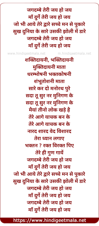 Lyrics of Jagadambe Teri Jai Ho - जगदम्बे तेरी जय हो
