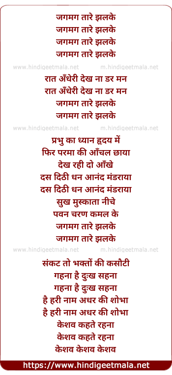 Lyrics of Jagmag Taare Jhalke - जगमग तारे झलके